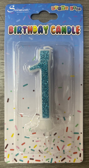 Celebrate a first birthday or special milestone with this Number 1 Candle. Dimensioned at 10cm high and 4cm wide, it features a lustrous glittered coating in silver, pink, or blue. Select your preferred colour when ordering.