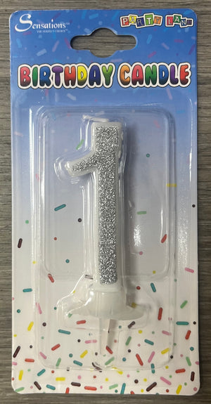 Number 1 Candle. Silver Pink or Blue