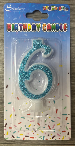 Number 6 Candle. Silver Pink or Blue